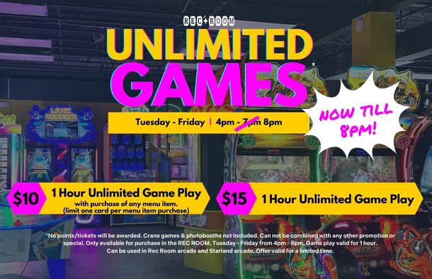 Grab a seat inside the Rec Room Bar & Grill or explore any of our additional dining spots for a quick bite, a laid-back meal, or a cozy place to recharge.