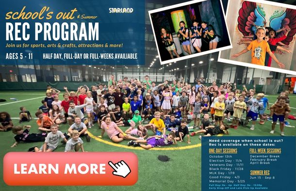 School’s Out… REC is ON! School might be closed, but Starland is OPEN for a full day of fun! Our Rec Program is back for one special day—bringing all the energy of summer camp packed into one unforgettable experience. Lunch is included with both half-day and full-day registration.